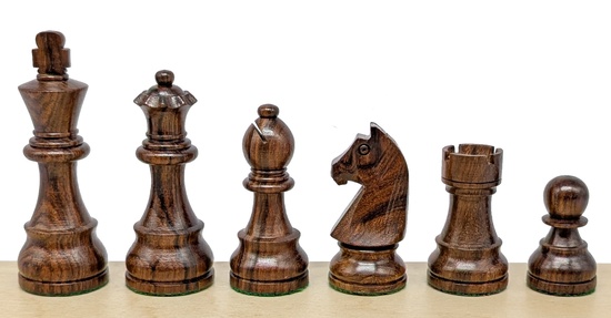 Klassiske sjakkbrikker i tre med det populære «Tysk springer»-designet. Brikkene er håndlaget i India, et land kjent for sitt førsteklasses håndverk innen sjakkutstyr.