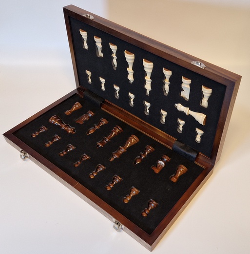 Sjakksett foldbart valnøtt, magnetisk 39 cm